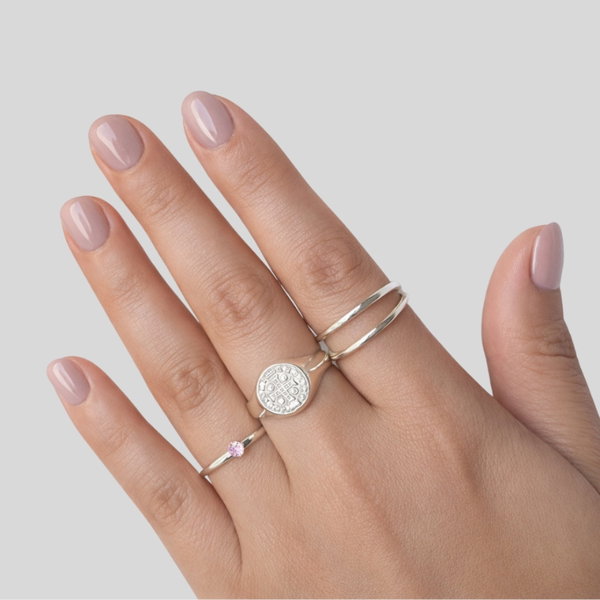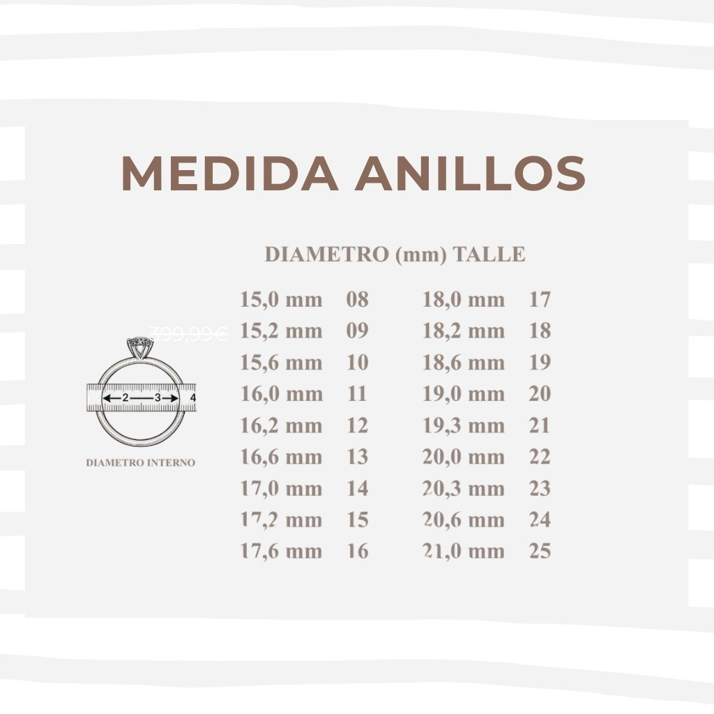 Para conocer tu medida de anillo, utiliza uno que ya tengas y medí el diámetro interno con una regla, sin incluir los bordes. La cifra en milímetros corresponde al talle indicado en la tabla.