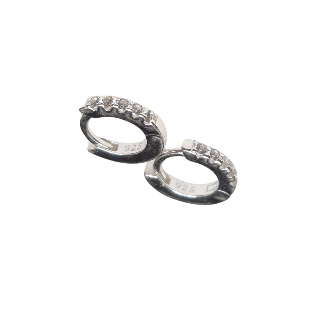 Argollas de Plata 925 con cubic engarzados en todo el frente. Un diseño luminoso y sofisticado que aporta brillo inmediato, convirtiéndose en un accesorio adaptable para elevar cualquier look. Su tamaño de 10 mm ofrece presencia sin perder comodidad, mientras que el acabado pulido y la estructura firme aseguran resistencia y uso diario. Hipoalergénicas, son un clásico contemporáneo con un toque de distinción. Especiales para segundas y terceras perforaciones.