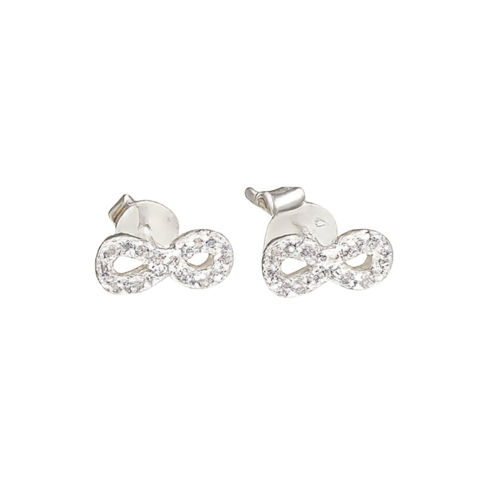 Aros de Plata 925 con diseño pasante. Una pieza con forma de infinito engarzado en cubic, elegante y significativa. Representa eternidad y equilibrio, aportando un brillo sofisticado que realza cualquier combinación. Su silueta estilizada y el destello de los cubic lo convierten en un detalle distintivo, perfecto tanto para el día a día como para ocasiones especiales. Con acabado brillante, hipoalergénicos y cómodos de llevar.