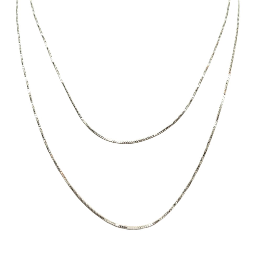 Cadena de Plata 925 con diseño veneciano, caracterizado por sus eslabones cuadrados y uniformes que aportan brillo y elegancia. Disponible en medidas de 40 cm y 45 cm, se adapta tanto a un estilo más ajustado al cuello como a un largo clásico. Su acabado pulido y estructura firme garantizan resistencia y comodidad, convirtiéndola en una pieza esencial para usar sola o acompañar con dijes.