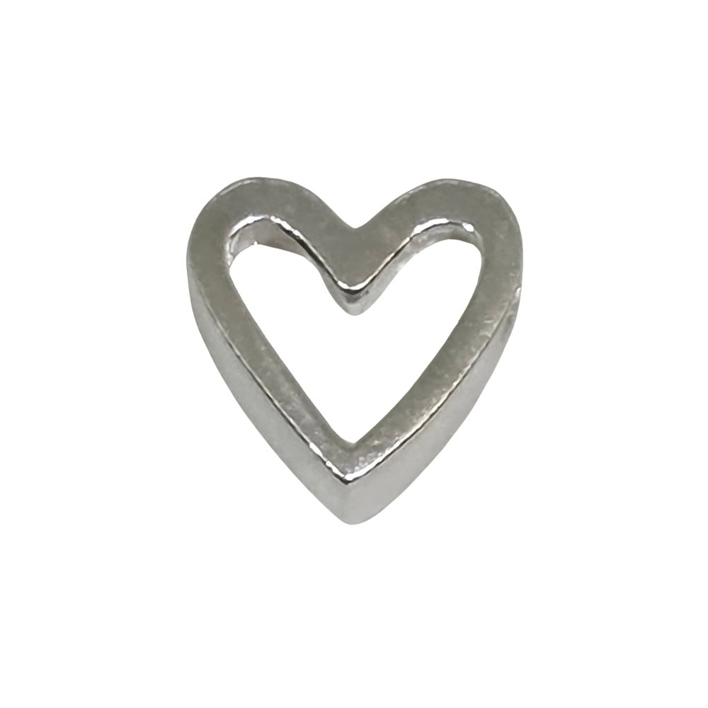 Dije en forma de corazón calado pasante de plata 925; pieza delicada de líneas puras que aporta una presencia sobria y refinada, o para elevar un conjunto de día con presencia discreta y sofisticada.